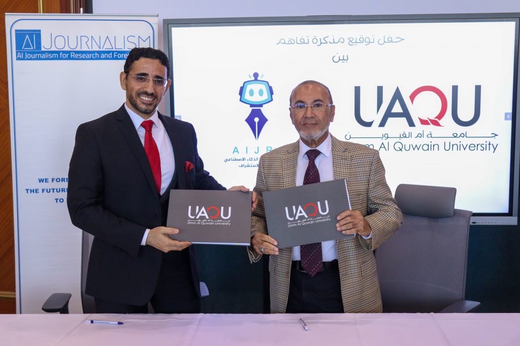 جامعة أم القيوين توقع مذكرة تفاهم مع مؤسسة صحافة الذكاء الاصطناعي
