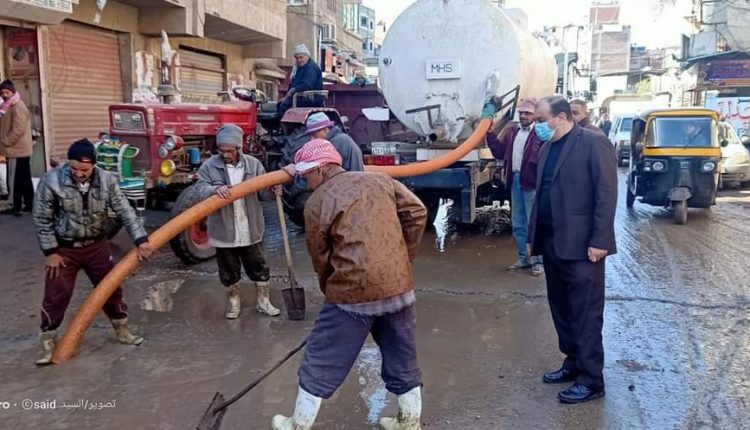 قابيل يشرف على أعمال سحب مياه الأمطار بشوارع بنى عبيد بالدقهلية