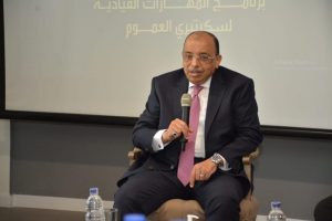 وعلى هامش زيارة وزير التنمية المحلية للأكاديمية التقي اللواء محمود شعراوي بمتدربي برنامج سكرتيري العموم الذي يتم تنفيذه بالأكاديمية في ختام فعالياته والتي استمرت ٥ أسابيع ، وتقدم اللواء محمود شعراوي بخالص الشكر والتقدير للرئيس عبدالفتاح السيسي علي موافقته الخاص بتدريب الكوادر المحلية من الوزارة والمحافظات بالاكاديمية الوطنية للتدريب ، كما قدم شعراوي الشكر للأكاديمية الوطنية للتدريب علي المجهود الذي تقوم به لتدريب وتأهيل العاملين بالمحليات ، مؤكداً أهمية هذا البرنامج؛ في إكساب سكرتيري العموم القدرة على المساهمة في تطوير المحافظات.
