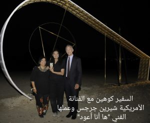 أكد السفير الأمريكي جوناثان كوهين أن  سفارة الولايات المتحدة بالقاهرة  يسرها أن تكون الراعي البلاتيني لمعرض الفن المعاصر “الأبد هو الان” الذي تنظمه مؤسسة (أرت دي ايجيبت) في أهرامات الجيزة، وأن تدعم المشاركة والأعمال الفنية الأصلية للفنانين الأمريكيين المعاصرين جيزيلا كولون وشيرين جرجس.