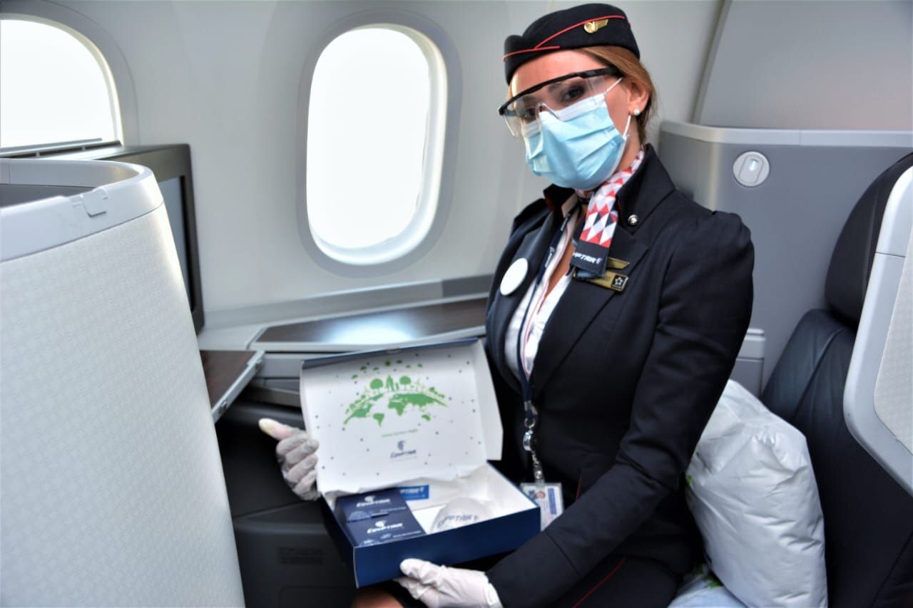 فى إطار استراتيجية وزارة الطيران المدنى لتحقيق التنمية المستدامة والحفاظ على البيئة انطلقت صباح اليوم من مطار القاهرة الدولى أول رحلة تجريبية فى قارة إفريقيا تسيرها الشركة الوطنية مصر للطيران بخدمات ومنتجات “صديقة للبيئة” على متن الطائرة بقيادة الطيار محمد منار وزير الطيران المدني متوجهة إلى باريس وعلى متنها 219 راكبا .. وقد أقلعت الطائرة فى رحلتها رقم “799 MS” من طراز بوينج787-9 “دريملاينر ” المعروفة بإسم طائرة الأحلام فى رحلة سيسجلها تاريخ مصر للطيران باعتبارها أول رحلة تسيرها الشركة الوطنية بخدمات صديقة للبيئة والأولى بين شركات الطيران الإفريقية.. وتأتى هذه الرحلة تزامنا مع احتفال وزارة الطيران بالعيد القومى الثانى والتسعين للطيران المدنى المصرى والذى يوافق ٢٦ يناير من كل عام.