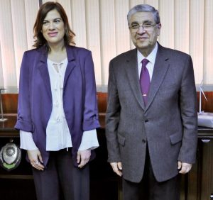 استقبل الدكتور محمد شاكر وزير الكهرباء والطاقة المتجددة السيدة Natasa Pilides وزيرةالطاقة والتجارة والصناعة بقبرص والوفد المرافق لها ، وذلك لبحث سبل دعم وتعزيز التعاون بين قطاعى الكهرباء والطاقة بالبلدين ومتابعة مستجدات مشروع الربط الكهربائى بين البلدين.