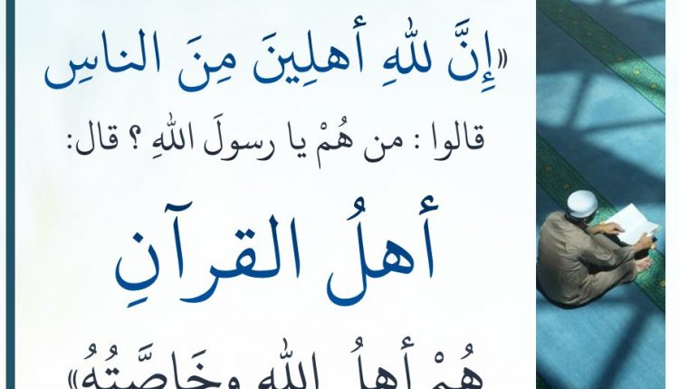 وأهل القرآن هم المشتغلون به حفظًا ودراسةً وعملاً، ولابد فى هذه الأهلية من العمل بما فى القرآن على قدر الطاقة، أما حفظه ودراسته دون العمل به فيكون حجة على صاحبه لا حجة له. ويدخل فى هذه الأهلية قراءة القرآن الكريم، ولو من المصحف وحسن الاستماع إليه وكل ذلك مشروط فيه العمل بالقرآن أوامر ونواه.