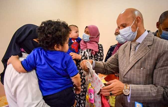 وكيل وزارة الصحة بالشرقية يشارك في توزيع ملابس العيد علي الأطفال كريمي النسب بمركز الإيواء بالعاشر