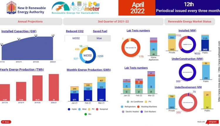 هذا ويمكن الاطلاع على نشرة الطاقة المتجددة NREAmeter عدد أبريل 2022 من خلال الرابط التالي: