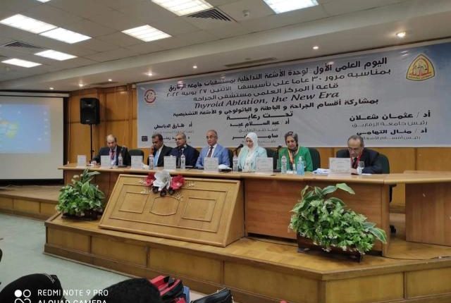 بمناسبة مرور ثلاثين عاما على إنشاء وحدة الأشعة التداخلية بمستشفيات جامعة الزقازيق شهد اليوم الدكتور عثمان شعلان رئيس الجامعة افتتاح المؤتمر العلمى الأول للوحدة بحضور الدكتور خالد الدرندلى نائب رئيس الجامعة للدراسات العليا والبحوث، والدكتورة جيهان يسرى نائب رئيس الجامعة لشئون خدمة المجتمع وتنمية البيئة، والدكتور عبد السلام عيد عميد كلية الطب ورئيس مجلس إدارة المستشفيات، والدكتور وليد ندا المدير التنفيذي للمستشفيات، والدكتورة أمل عطا وكيل كلية الطب، والدكتور منال التهامى رئيس قسم الأشعة، والدكتور طارق الدياسطى رئيس الجمعية، والدكتور أحمد الدرى من رواد الأشعة التداخلية والدكتور خالد صفوت نقيب أطباء الشرقية، والدكتور يحيى زكريا أستاذ الجراحة ورئيس فريق زرع الكبد ، والدكتور وائل صبرى المشرف العام للشؤون العلاجية، والدكتور سامح صابر رئيس الوحدة، والدكتور محمد زيتون مدير الوحدة، وعدد كبير من السادة رؤساء الأقسام بالمستشفيات وأعضاء هيئة التدريس بجامعة الزقازيق والجامعات المصرية، ومحمد فكرى مدير عام الشؤون المالية والإدارية بالمستشفيات.