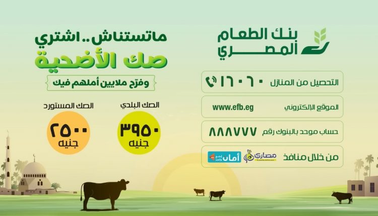 بتوفير الصكوك .. بنك الطعام المصري بدأ الاستعداد لتوزيع لحوم الأضاحي على مليون أسرة على مستوى الجمهورية