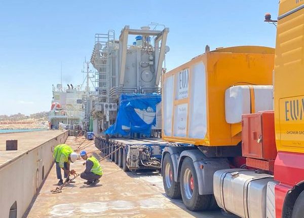 وقد استقبل ميناء العريش السفينة بحمولة ٣٥٠٠ طن، تحتوي على عدد ٢ محولات قدرة وتوربينات ومستلزمات المحطة.