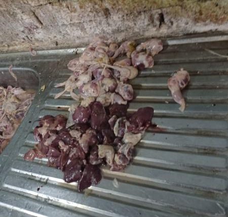 تم القيام بمداهمة مجزر لذبح الدواجن يدويا، يقوم بذبح وتجهيز الدواجن، ويشكل خطر داهم على صحة المواطنين، نتيجة لمخالفته الإشتراطات الصحية، واستخدام مصدر مياه جوفية غير آمنة، وتم إعدام ٤١٩ كجم دجاج مفروم، وهياكل ودهن دجاج، وسحب عينات دجاج مذبوح وإرسالها للمعامل لبيان مدي صلاحيتها للإستهلاك الآدمي، كما تم تحرير محاضر بالمخالفات المرصودة بقسم الشرطة، وعمل إخطار بالغلق للجهات المختصة.