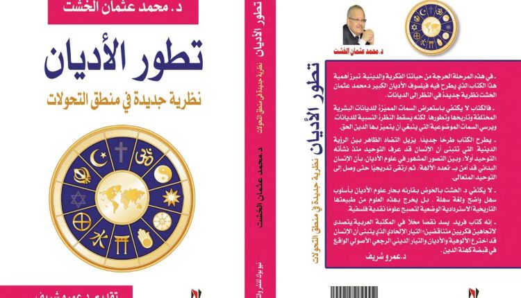 ففي كتابه “تطور الأديان” يطرح الدكتور الخشت رؤية جديدة في توظيف المناهج العلمية والفلسفية الحديثة في دراسة الأديان، وهو يقدم في الكتاب نظرية جديدة تجمع بين الإيمان ومفهوم التطور، ويقدم أول مقارنة شاملة بين الأديان والفلسفات ويتحول معه علم مقارنة الأديان من مجرد «علم وصفي» إلى «علم نقدي فلسفي» يجمع بين الوصف العلمي والتحليل النفسي والنقد العقلي الملتزم بمعايير المنطق، ويوظف تلك المعايير في أشكالها الأكثر تطوراً في عصر الحداثة وما بعدها، كما يحلل الدكتور الخشت من منظور نقدي إجابات الأديان على هموم الإنسان الأزلية؛ الإنسان .. من أين؟ وإلى أين؟، العالم ..لم كان؟ ما حقيقته؟ وإلى أين يسير؟.