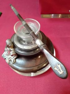وتضم القطع المعروضة مجرفة حجر الأساس ومطرقة والميدالية التذكارية التي حفر عليها اسم الخديوي عباس حلمي الثاني والتي تم تصميمها وصنعها خصيصاً لتخليد حدث وضع حجر الأساس، بالإضافة إلى الريشة ودواة الحبر التي تم التوقيع بهما لتخليد هذا الحدث الهام.
