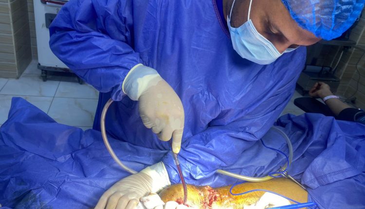 وأشار وكيل وزارة الصحة بالشرقية إلى أنه فور وصول المريض لقسم الإستقبال والطوارئ بمستشفي أبو حماد المركزي، قام الفريق الطبي بإجراء الفحوصات الإكلينيكية والمعملية، والأشعات اللازمة، والتي أوضحت إصابة الشاب بكسر مضاعف مفتوح ومفتت بالنهاية البعيدة لعظمة الفخذ الأيسر، مع جرح متهتك في مكان الكسر طوله حوالي ١٥ سنتيمتر، وفقد بأجزاء من العظام طولها ١٢ سنتيمتر من مكان الكسر، مع نزيف حاد علي مستوي أعلي مفصل الركبة وأسفل الفخذ، وتقرر إدخال المريض فورا لغرفة العمليات في الساعات المتأخرة من الليل، بعد تحضير عدد ٥ أكياس دم مطابقة لفصيلة دمه، وتم إجراء عملية ناجحة لعمل رد مفتوح مع إعادة تكوين مفصل الركبة عن طريق زرع جزء من الشظية بالترقيع العظمي، وعمل استطالة للعظام، وتثبيتها بواسطة مثبتات خارجية LRS، والمريض الآن بحالة مستقرة تحت الرعاية والملاحظة الطبية بالمستشفى.