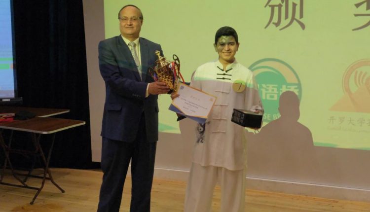 فاز في الجولة التأهيلية التي عقدها معهد كونفوشيوس بجامعة القاهرة، الطالب محمد إسماعيل من مدرسة الصداقة المصرية الصينية بالسادس من أكتوبر بالمركز المتميز الذي يؤهله لتمثيل مصر في المسابقة النهائية بالصين.