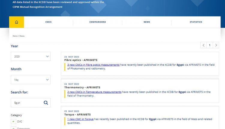 القومى للمعايرة ينجح فى نشر ٦ قدرات قياس جديدة بقاعدة بيانات المكتب الدولى للأوزان والمقاييس