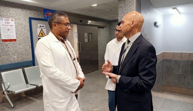 تفقد وكيل الوزارة يرافقه الدكتور حامد خطاب مدير المستشفى، الأقسام الطبية المختلفة، وتم التأكد من تواجد القوي البشرية في أماكن تقديم الخدمة الطبية، وتوافر الأدوية والمستلزمات الطبية، وتم الاطمئنان على جودة الخدمات الطبية المقدمة للمرضي، وتنفيذ خطة الطوارئ بالمستشفى، كما اطمأن على الحالة الصحية للمرضى وحرص على الاستماع إليهم بوحدة العناية المركزة، والتي تسع لعدد ٢٨ سرير، وبها ١٧ حالة، حيث أثنى المرضى تماماً على أداء الخدمة الطبية المقدمة لهم، وقام وكيل الوزارة بمناظرة السجلات الطبية الخاصة بالمرضى، موجهاً بتوفير كافة أوجه الرعاية الطبية لهم، مطمئناً من مدير المستشفى علي انتظام عمل العمليات الجراحية لأورام الجهاز الهضمي، وكذلك مناظير الجهاز الهضمي، مقدماً التهنئة للمرضى وجميع العاملين بالمستشفى، بمناسبة عيد الأضحى المبارك، أعادة الله علينا وعلى الأمة الإسلامية بالخير واليمن والبركات.