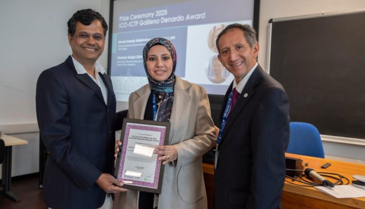 • أعلن المركز الدولي للفيزياء النظرية (ICTP) واللجنة الدولية للبصريات (ICO) منح جائزة غاليانو ديناردو (ICO-ICTP Gallieno Denardo Award) للعالمة المصرية الدكتورة أمنية حمدي عبد الرحمن نعمة الله الأستاذ المساعد بقسم تطبيقات الليزر الهندسية بالمعهد القومي لعلوم الليزر – جامعة القاهرة لعام 2025.
