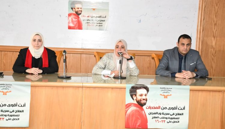 وأوضحت د.رشا فى كلمتها دور صندوق مكافحة وعلاج الإدمان فى توعية الشباب أن صندوق رعاية و مكافحة الإدمان له دور مختلف عن مكافحة المخدرات المعني بضبط أكبر كمية من المخدرات والذي يعد أمر صعب و ضخم حيث أن أقوى جهاز في العالم يستطيع مصادرة نسبة قد تصل ل ٩% فقط من حجم المخدرات التى تدخل أى دولة، لافتة إلى أن الصندوق سهل على المواطنين عملية العلاج السريع بالإبلاغ عن أي حالة إدمان من خلال الخط الساخن للعلاج والتأهيل الاجتماعي ورقمه ١٦٠٢٣ للخدمات الاستشارية والعلاجية، كما أكدت على أهمية الأبعاد الإجتماعية للظاهرة ومدى تأثيرها على الفرد والأسرة والمجتمع وطرق الوقاية ،والمفاهيم المغلوطة حول التعاطي والإدمان.