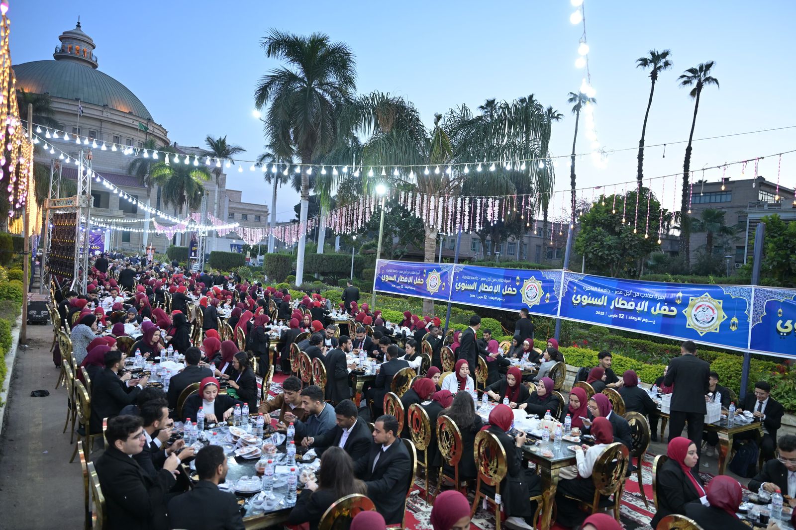 خلال الحفل، هنأ رئيس جامعة القاهرة الطلاب وأعضاء هيئة التدريس والعاملين بالشهر الفضيل، معربًا عن سعادته بالمشاركة في هذه الأجواء الرمضانية التي تعزز روح الترابط بين أفراد المجتمع الجامعي. وأشاد بالتنظيم المتميز للحفل، مؤكدًا أن الإفطار الجماعي يعكس روح الأسرة الواحدة ويعزز الروابط الاجتماعية بين الطلاب.