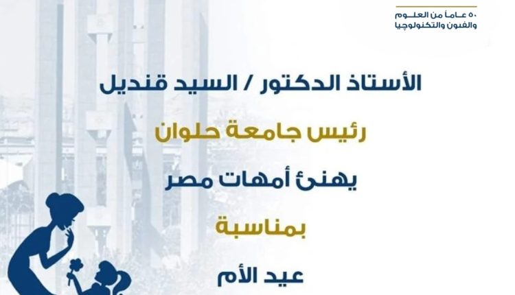 تقدم الدكتور السيد قنديل، رئيس جامعة حلوان، بأسمى آيات التهنئة لعظيمات مصر من الأمهات بمناسبة عيد الأم، معربًا عن تقديره العميق للدور التاريخي والريادي الذي تضطلع به الأم المصرية في شتى المجالات الإنسانية، مؤكدًا أنها رمز العطاء والتضحية وركيزة أساسية في بناء المجتمع.