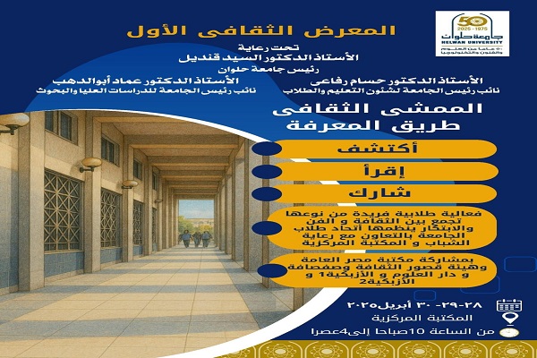 جامعة حلوان تطلق المعرض الثقافي الأول: رحلة لاكتشاف المعرفة عبر الممشى الثقافي