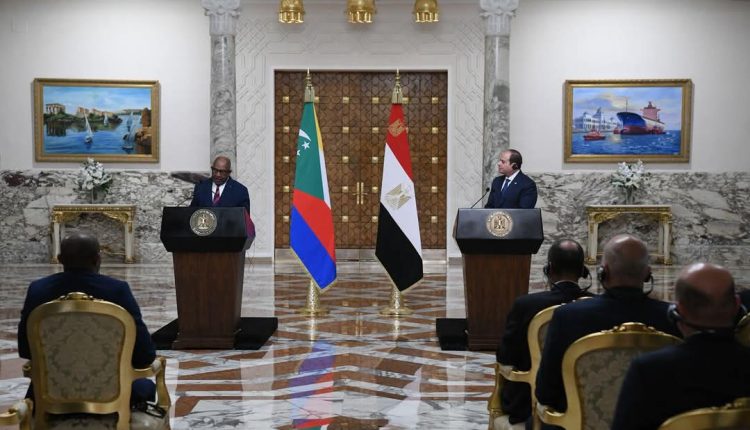 وقال الرئيس السيسي ،لقد أجريت اليوم مع الرئيس عثمان غزالي ، مباحثات ثنائية مثمرة، ناقشنا خلالها أطر التعاون القائمة بين البلدين الشقيقين، واتفقنا على ضرورة العمل بكل جهد، لتعزيز التعاون الثنائى فى المجالات الاقتصادية والاستثمارية والتجارية، على النحو الذى يرقى للروابط الأخوية بين الشعبين، ويتناسب مع آفاق التعاون المتاحة، وأكدت على استعداد الحكومة والشركات المصرية، لدعم خطط التنمية فى جزر القمر.، وخاصة “خطة جزر القمر 2030″، ونقل الخبرات المصرية المكتسبة، من تنفيذ خطط التنمية فى مصر، وتنفيذ مشروعات بالدول الإفريقية الشقيقة، فى مختلف المجالات والقطاعات الاقتصادية.
