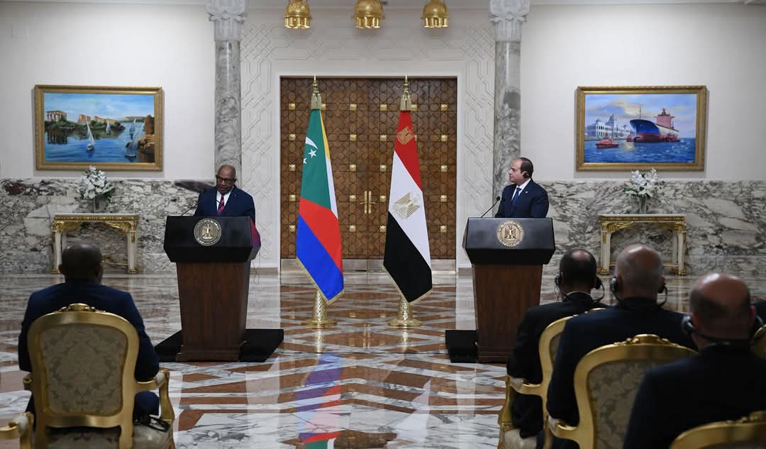 كما شهد الجانبان التوقيع على عدد من الاتفاقيات ومذكرات التفاهم بين البلدين، قبل أن يعقدا مؤتمراً صحفياً مشتركاً،اكد خلاله الرئيس السيسي على العلاقات الأخوية التاريخية، التى تجمع مصر وجزر القمر، وروابط الهوية العربية والإفريقية والإسلامية المشتركة بين البلدين.