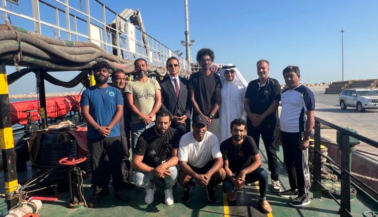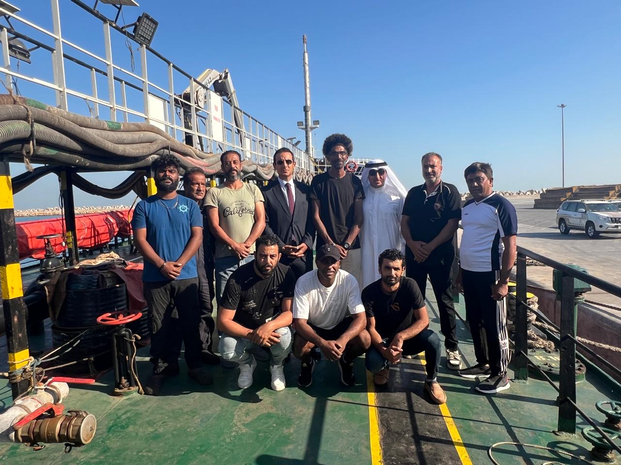 في إطار متابعة وزارة الخارجية والهجرة وشئون المصريين بالخارج لحالة البحارة المصريين على السفينة Petro 1، قامت القنصلية العامة لجمهورية مصر العربية بدبي صباح اليوم الجمعة ٩ مايو بإيفاد ممثل عنها للقاء البحارة المصريين. وقد تمت هذه الزيارة بالتنسيق مع السلطات الإماراتية ومسئولي ميناء “خالد” بالشارقة، وذلك عقب استقرار الأحوال الجوية، والتي سمحت بدخول السفينة إلى الميناء بمساعدة من الجانب الإماراتي وإدارة الميناء.