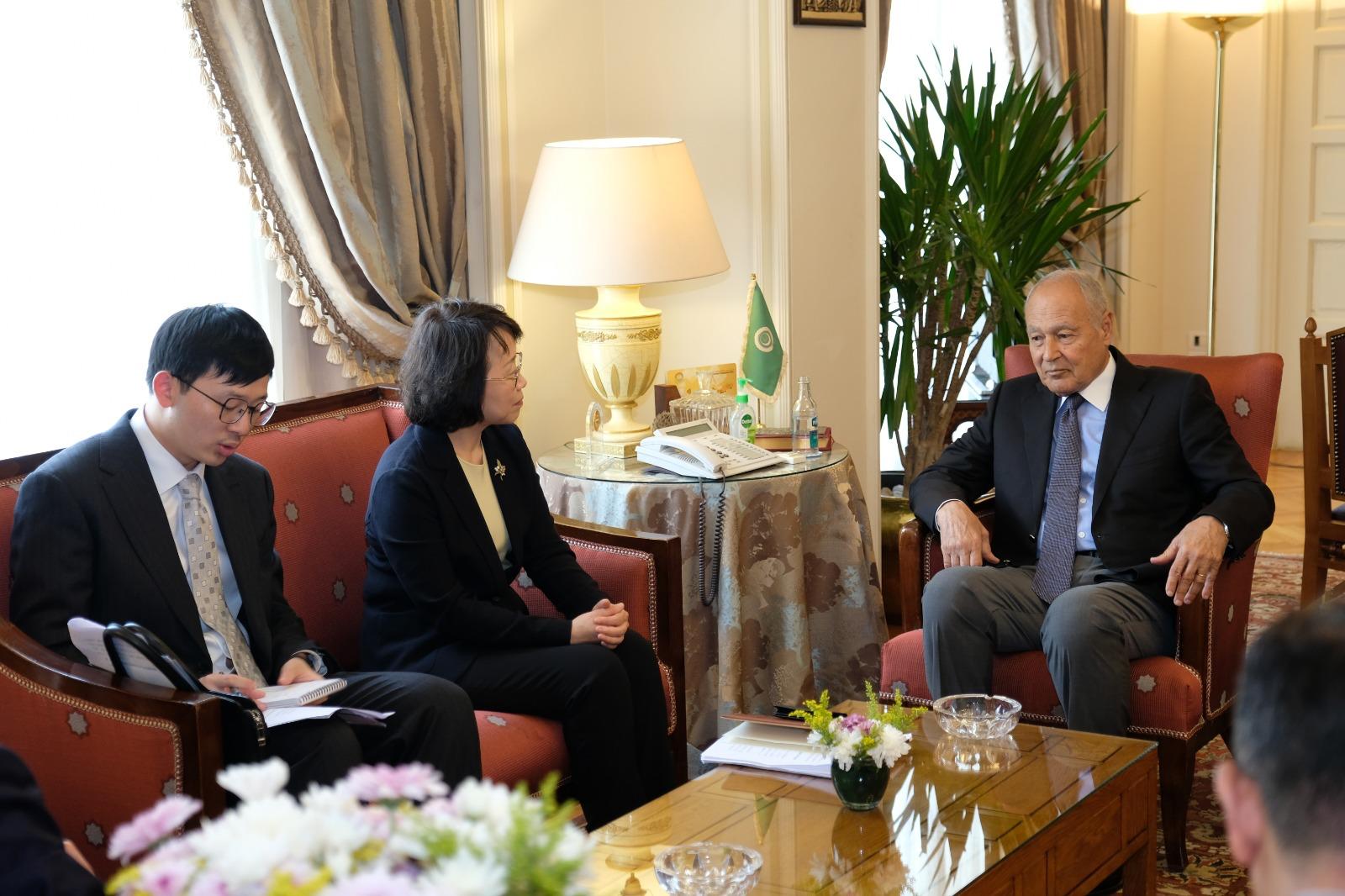 التقى أحمد أبو الغيط الأمين العام لجامعة الدول العربية، بمقر الأمانة العامة الوزيرة تساو شومين رئيسة الهيئة الوطنية للإذاعة والتليفزيون ونائبة رئيس دائرة الإعلام باللجنة المركزية للحزب الشيوعي الصيني والتي يصاحبها وفد رفيع المستوى في زيارة إلى جمهورية مصر العربية.