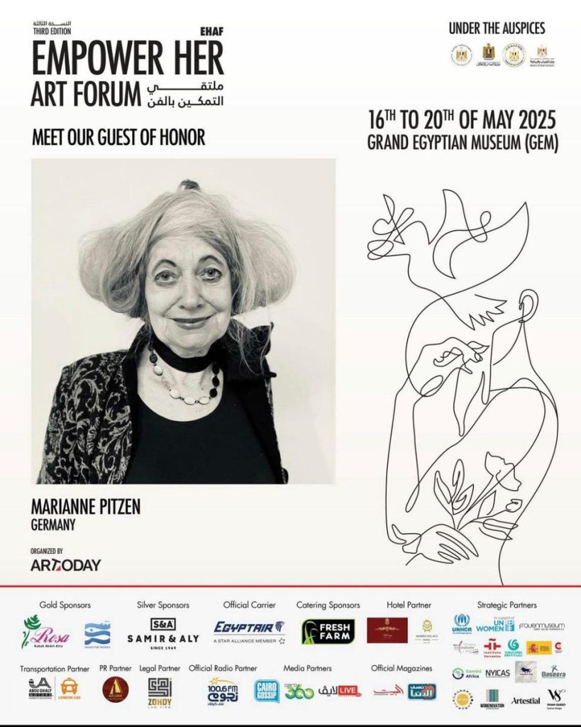 ويُعد منتدى “التمكين بالفن” احتفالية دولية بالإنجازات الفنية للمرأة في جميع أنحاء العالم، وتشارك هذا العام ست فنانات من ألمانيا – ماريان بيتسن، وأندريا عيسى، وكونزويلو مينديز، ودانييلا فلورشيم، وكارولا تيشلر، وياسمين يلماز – سيعرضن أعمالهن في المتحف المصري الكبير. وفي المقابل سوف يتم الترحيب بست فنانات مصريات في عام ٢٠٢٦ كجزء من المبادرة الجديدة WE – بمدينة بون.