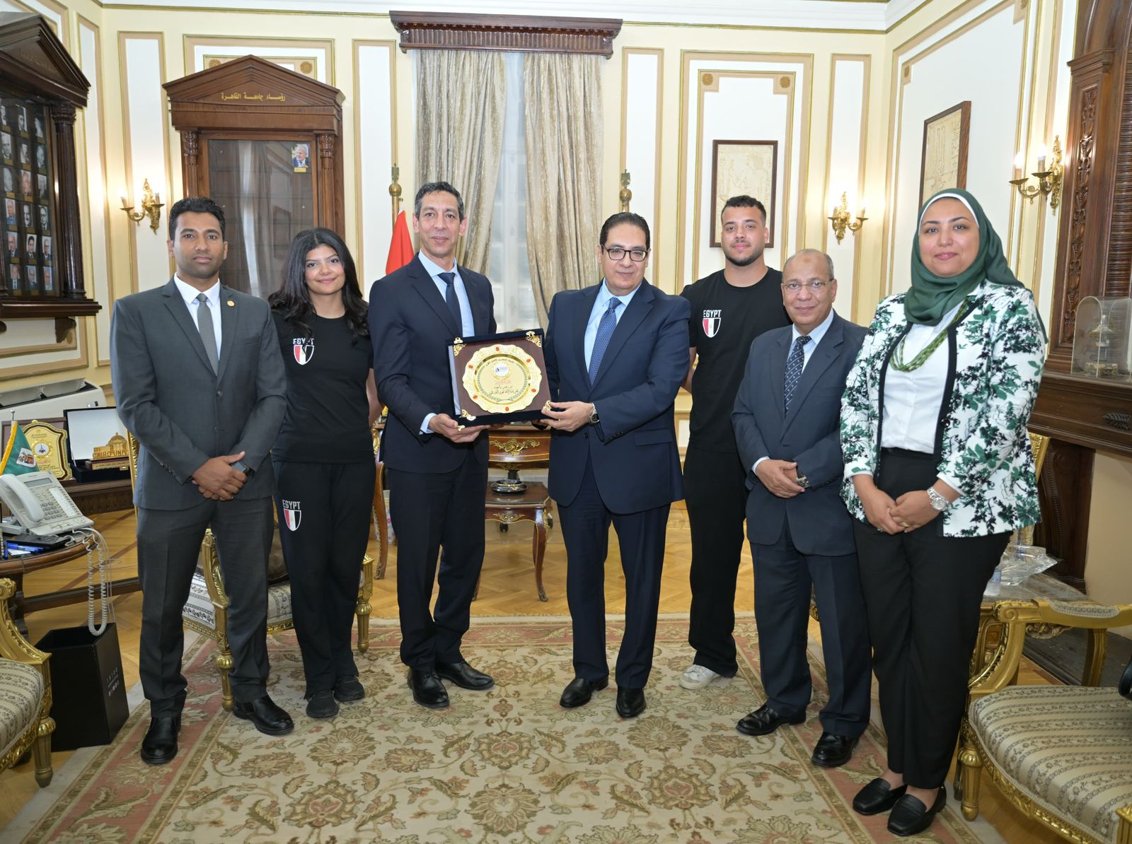 في ختام اللقاء، اهدى العميد حاتم فوده، رئيس الاتحاد المصري لألعاب القوى، درع الاتحاد إلى الدكتور محمد سامي عبدالصادق، رئيس جامعة القاهرة، تقديرًا لدور الجامعة الرائد في دعم الرياضة المصرية وتعزيز الشراكة المؤسسية لخدمة أبطال ألعاب القوى.
