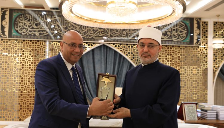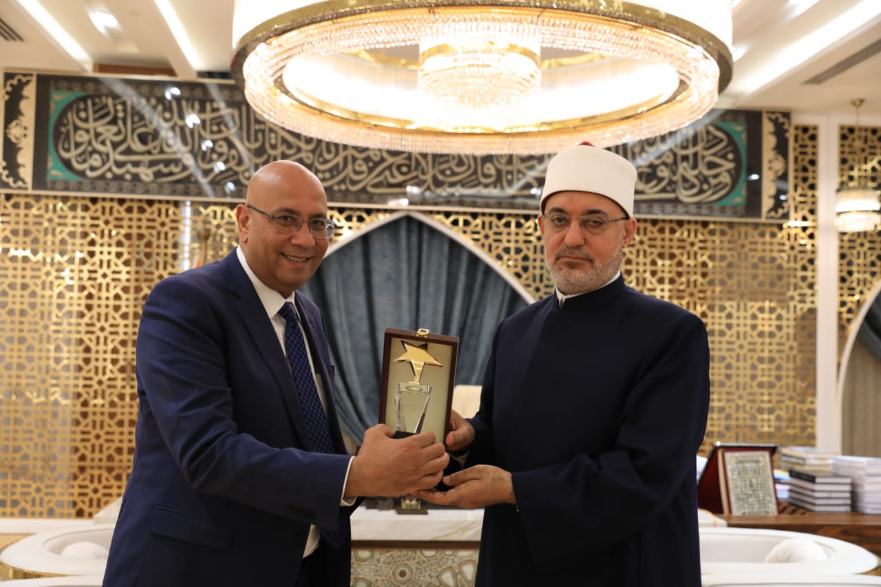 كما أعرب راتب عن سعادته بحفاوة الاستقبال، مؤكدًا على الاهتمام بالتعاون مع مؤسسات وهيئات الدولة المصرية والارتقاء بمنظومة الخدمات المقدمة وتحفيز التعاون المشترك وقد قام بتقديم الدرع لفضيلة الأستاذ الدكتور نظير عياد – مفتي الجمهورية والأمين العام لدور وهيئات الإفتاء في العالم.