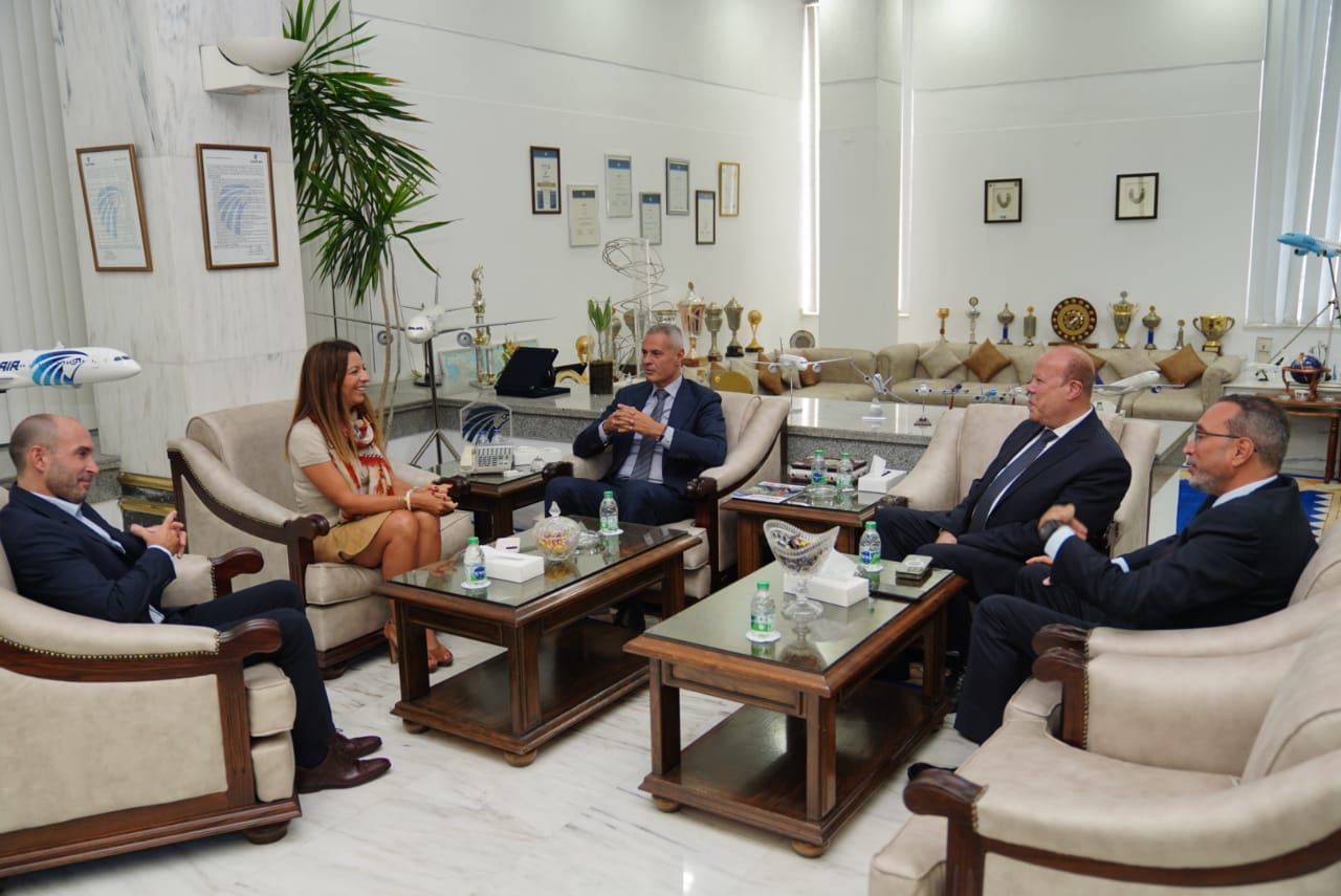 وفى ضوء ذلك إلتقى الطيار أحمد عادل رئيس مجلس الإدارة والعضو المنتدب التنفيذى للشركة القابضة لمصر للطيران السيد/ محمد لطفي المدير الإقليمي لمنطقه شمال أفريقيا و بلاد الشام بالاتحاد الدولي للنقل الجوي (أياتا) والسيدة Laetitia Slottved رئيس قطاع الأحداث والمؤتمرات بشركة CP&S- Events وذلك بحضور خالد عطوة رئيس مجلس إدارة شركة مصر للطيران للخدمات الأرضية، حيث هنأ محمد لطفى الطيار أحمد عادل على استضافة مصر للدورة الثامنة والثلاثين من الحدث الهام، مؤكدًا أن اختيار القاهرة يعكس الثقة الكبيرة التي يوليها الاتحاد الدولي للنقل الجوي (أياتا) لمصر للطيران وخاصة في مجال الخدمات الأرضية وكذا دور مصر في صناعة الطيران المدني على المستويين الإقليمي والدولي.