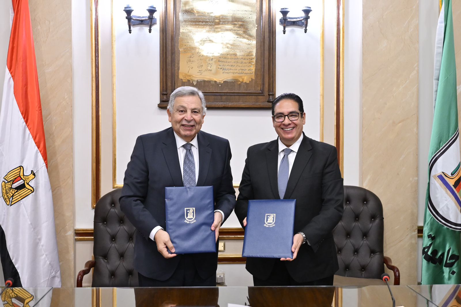 إنطلاقا من الدور الريادي لجامعة القاهرة في دعم وتطوير منظومة التعليم الجامعي والبحث العلمي بمختلف الجامعات المصرية، وقع الدكتور محمد سامي عبدالصادق، رئيس جامعة القاهرة، والدكتور أحمد سامح فريد، رئيس جامعة نيو جيزة ووزير الصحة وعميد طب قصر العيني الأسبق، بروتوكول تعاون مشترك بين الجامعتين في مجال الدراسات العليا لطب الأسنان.