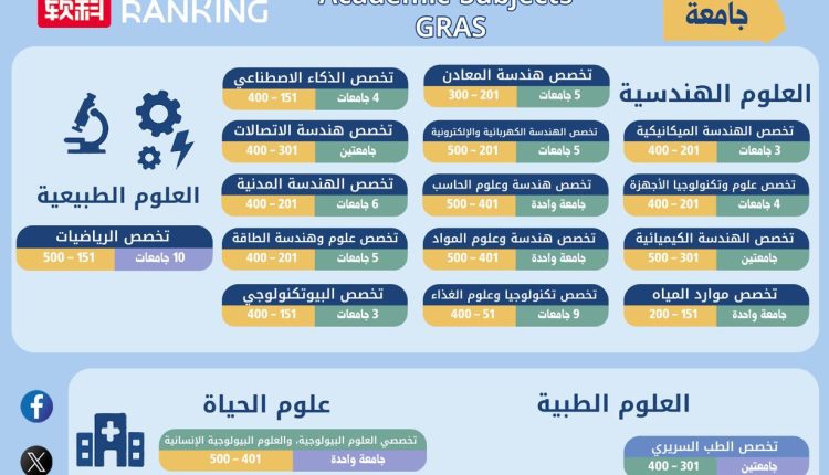 ويُعد تصنيف شنغهاي للتخصصات الأكاديمية (Shanghai Ranking – GRAS) أحد أبرز التصنيفات العالمية التي تقيس أداء الجامعات في التخصصات الدقيقة اعتمادًا على بيانات موضوعية بالكامل دون أي استبيانات أو آراء بشرية.
