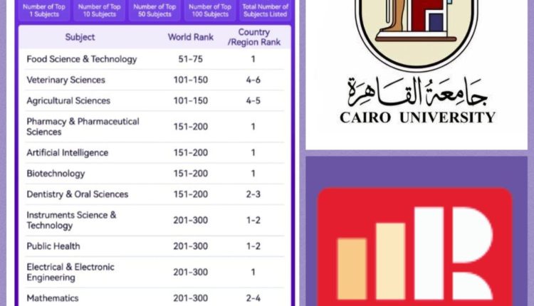 جامعة القاهرة ضمن الأفضل عالميًا في 16 تخصصًا وفق تصنيف شنغهاي