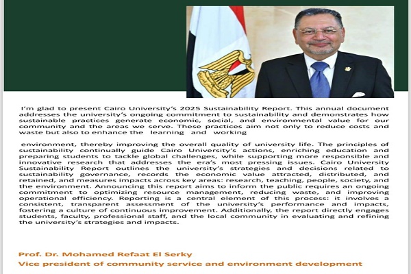 أعلن الدكتور محمد سامي عبد الصادق رئيس جامعة القاهرة، صدور تقرير استدامة الجامعة لعام 2025 كوثيقة مرجعية تؤرخ تحول الجامعة الجذري من النموذج التقليدي كمؤسسة لنشر المعرفة، إلى تبني نموذج “جامعات الجيل الرابع” التي تستهدف دمج التعليم والبحث العلمي مع الابتكار وريادة الأعمال لخدمة القضايا المجتمعية والبيئية الُملحة، والمساهمة في تحقيق رؤية مصر 2030، وتوطين أهداف التنمية المُستدامة للأمم المتحدة.