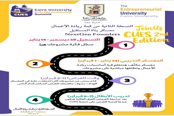 ويمثل المعسكر تجربة تدريبية مكثفة تجمع بين التعلم التطبيقي والتوجيه العملي، حيث يعمل المشاركون على تطوير أفكارهم الريادية وبناء نماذج مشروعات قابلة للتنفيذ، وصولًا إلى تقديم عروض احترافية أمام خبراء ومتخصصين، مع إتاحة فرص متميزة للفرق المتفوقة للعرض على منصة قمة ريادة الأعمال في نسختها الثانية CUES يوم ١٠ فبراير ٢٠٢٦وبناء شبكات داعمة لمسيرتهم المستقبلية.