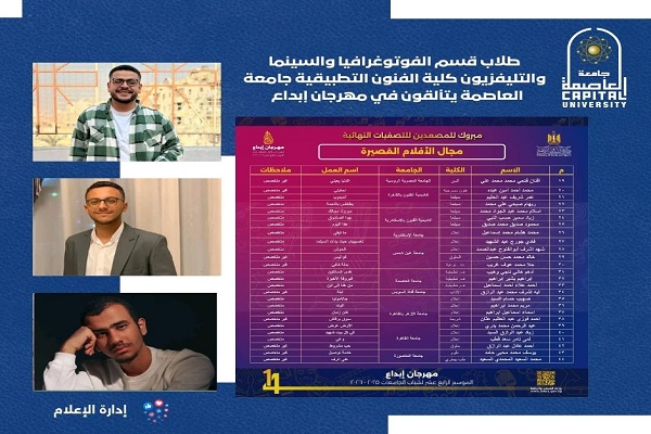 طلاب قسم الفوتوغرافيا والسينما والتليفزيون كلية الفنون التطبيقية جامعة العاصمة يتألقون في مهرجان إبداع