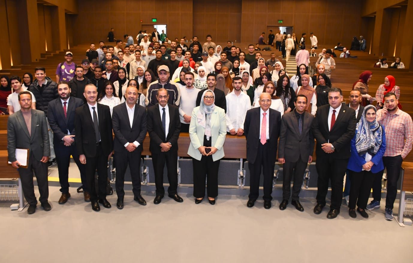 بحضور د. ياسين الشاذلى عميد كلية الحقوق ود. يمنى صفوت عميد كلية الألسن و د. هبة بركات وكيل كلية البنات ود. محمد مرسى وكيل كلية التجارة و د. حنان سالم وكيل كلية الآداب واللواء حسام الشربيني أمين الجامعة المساعد لشئون خدمة المجتمع وتنمية البيئة .